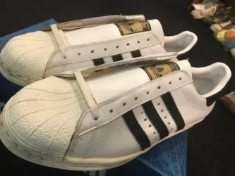 □おっ!「金ベロ」だ! 再発でしたけど、自分が履いてたSUPERSTARは「金ベロ」でした! RUN D.M.C.はどっちを履いていたんでしょ?