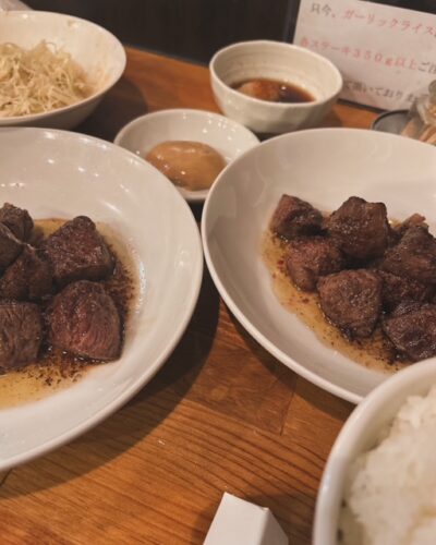 □ハイハイ、焼けましたよ~、「サガリ」と「リブかぶり」、150gずつ!