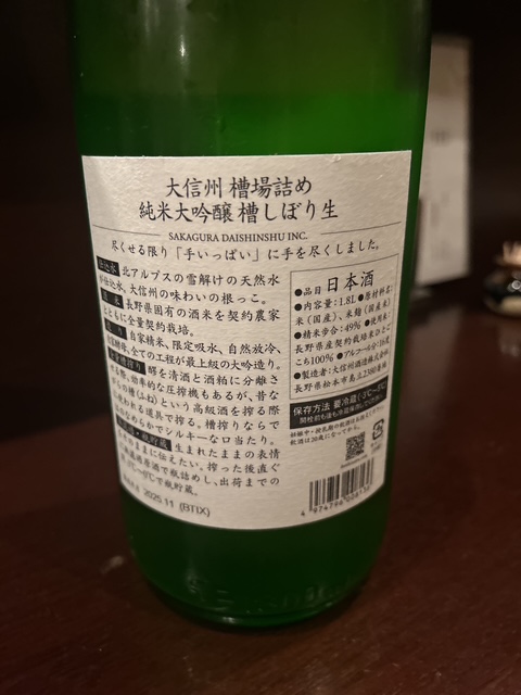 大信州 槽場詰め 純米大吟醸